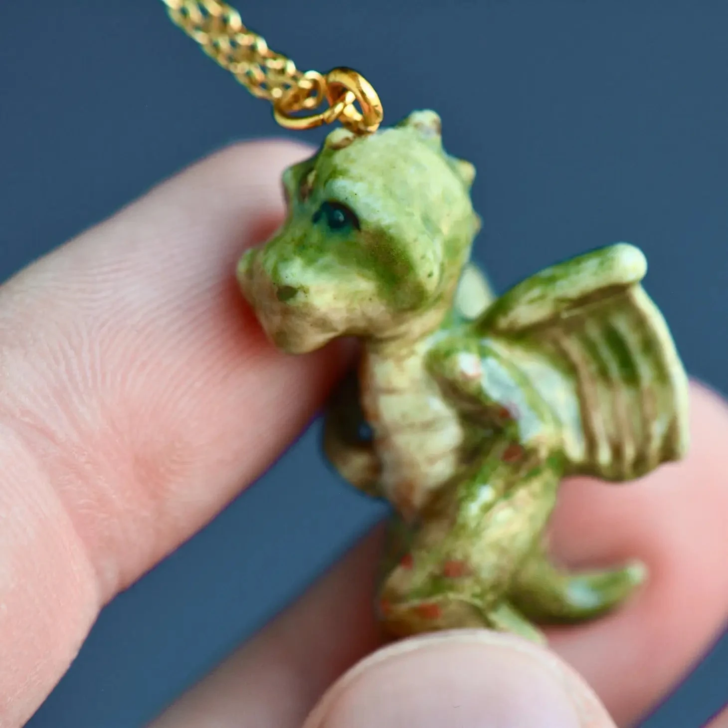 Unleash your inner enchantress with our limited-edition Baby Dragon Necklace! This handcrafted porcelain pendant features a fierce baby dragon that adds a spark of mystical fire to any ensemble. Strung on a delicate chain, this necklace is a versatile and captivating addition to both casual and elegant looks. Due to the handmade nature of this product, slight variations in color and design may occur, making each piece truly one-of-a-kind. Perfect for fantasy enthusiasts, dragon lovers, or anyone who appreciates the blend of fashion, artistry, and a touch of medieval magic.