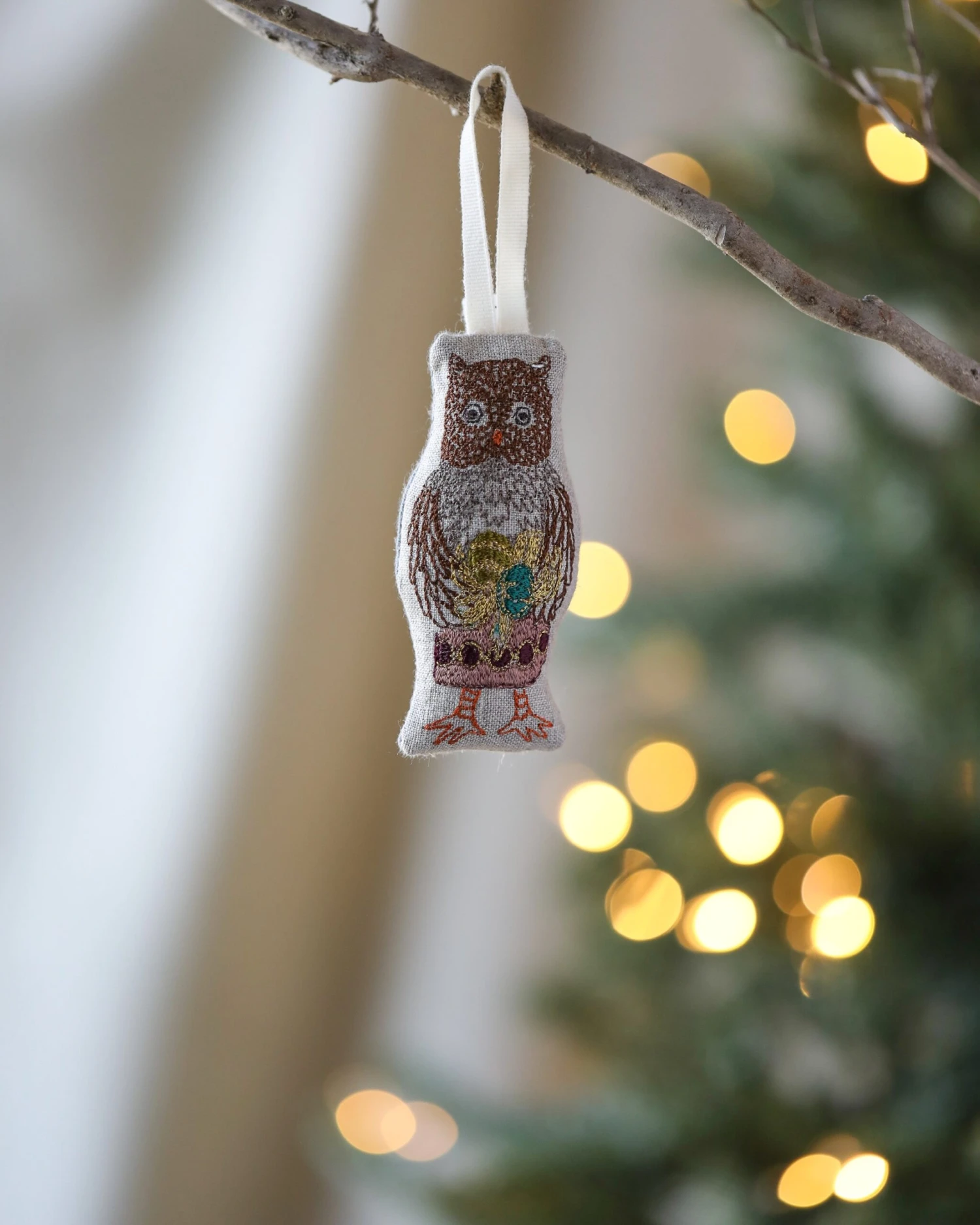 Owl presents a gift festooned with Christmas ornaments and gold tinsel. Collect all four of our Animals with Presents ornaments for a festive forest theme.