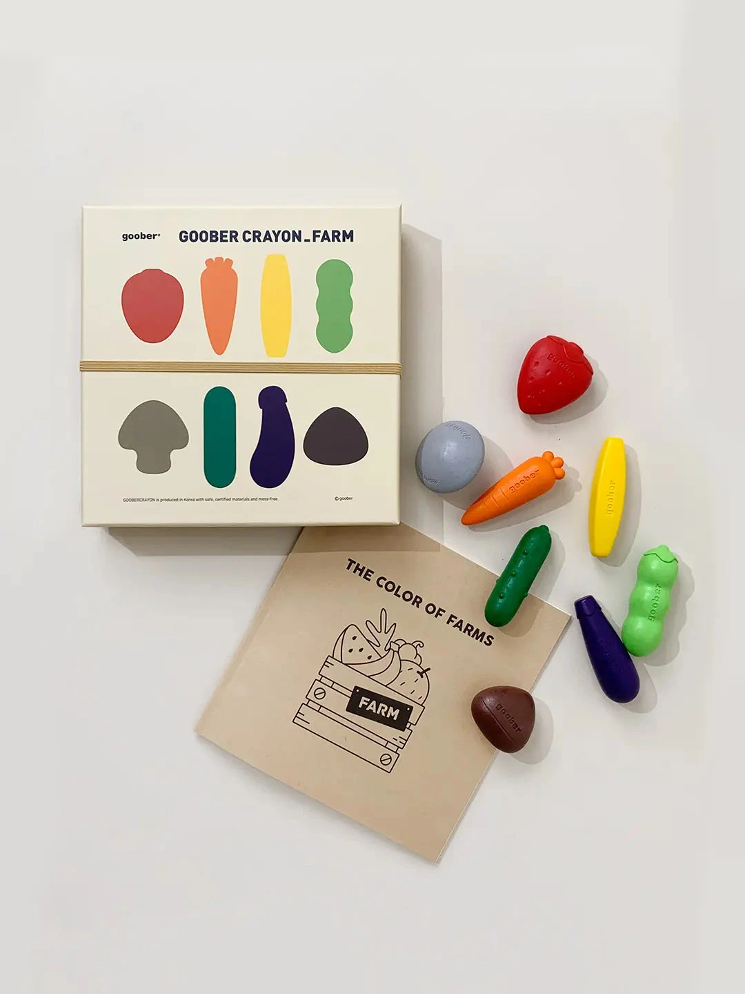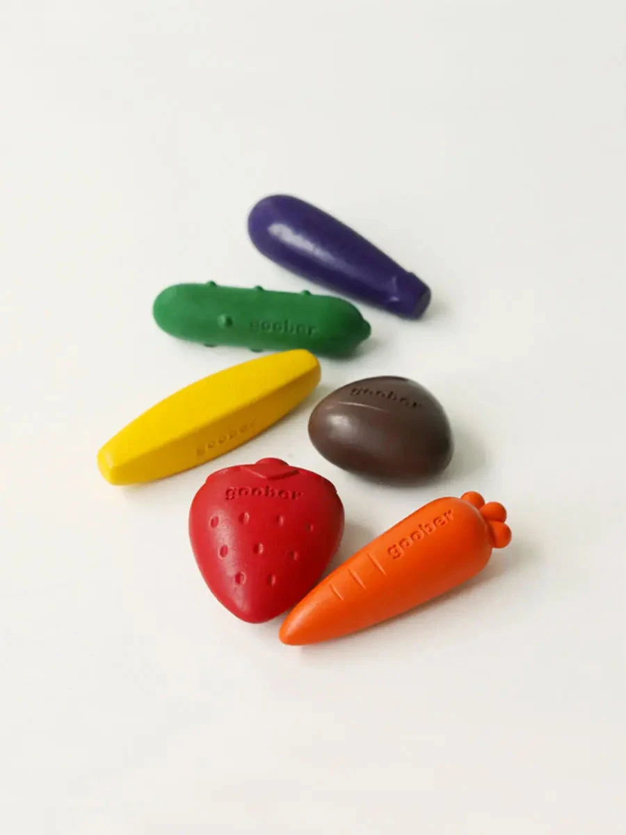 These 8 crayons come in shapes and colors of strawberry, carrot, banana, pea, cucumber, egg plant, chestnut and mushroom in a beautifully designed storage box.