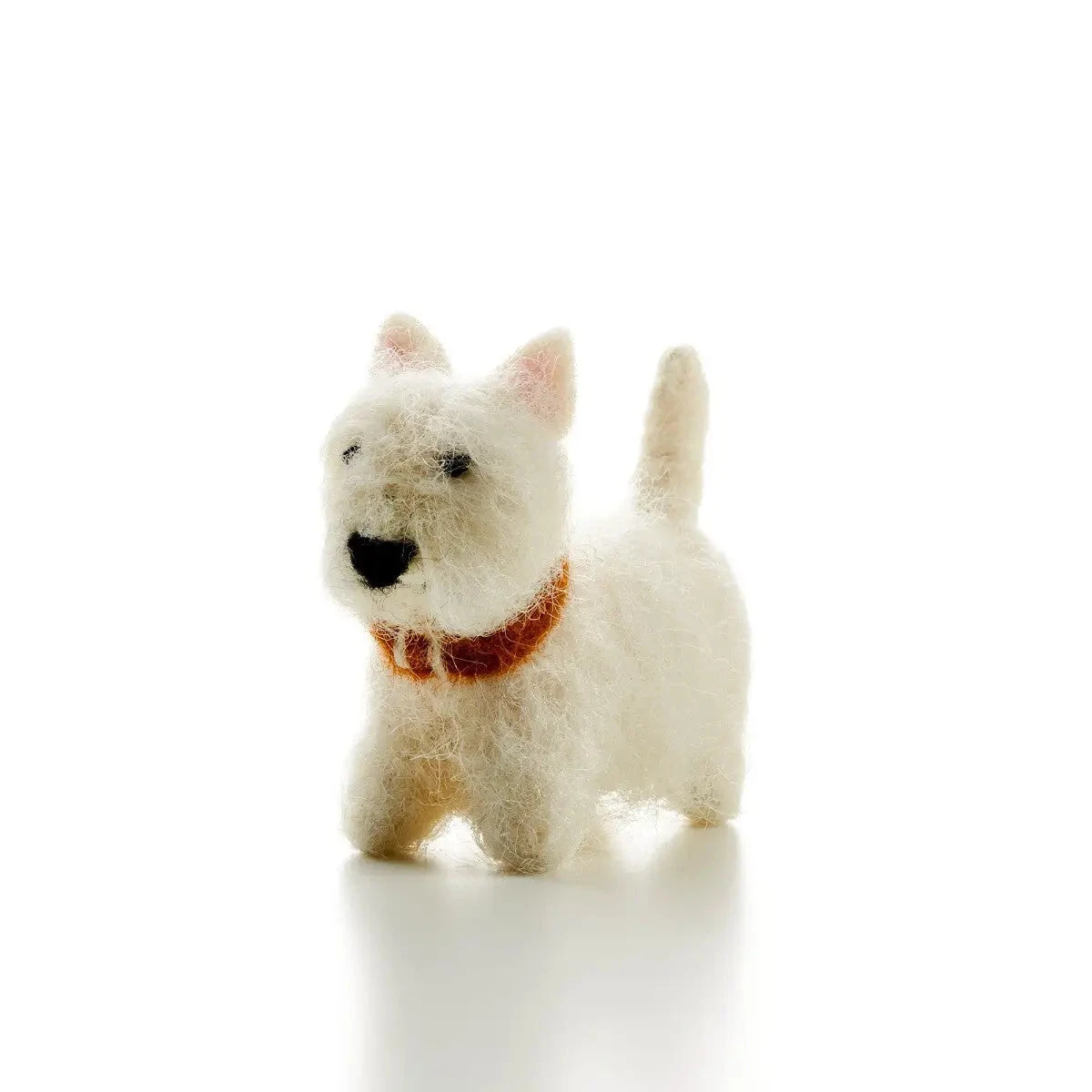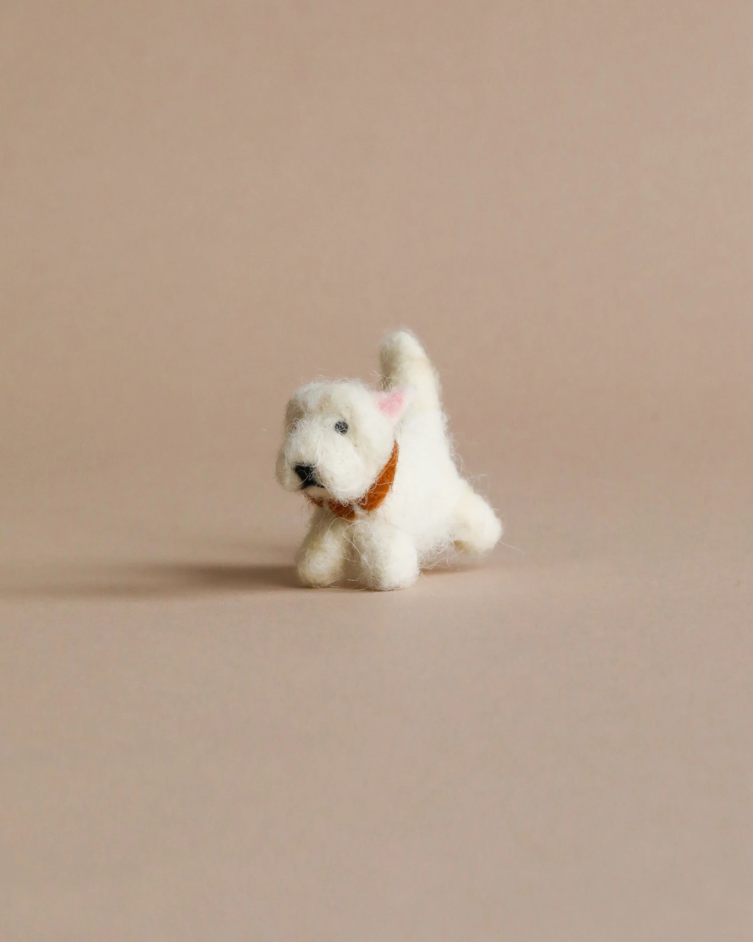 Hailing from the scottish highlands, white full coated bruce the westie is a handsome chap with his beautiful black piecing eyes and little solid body!