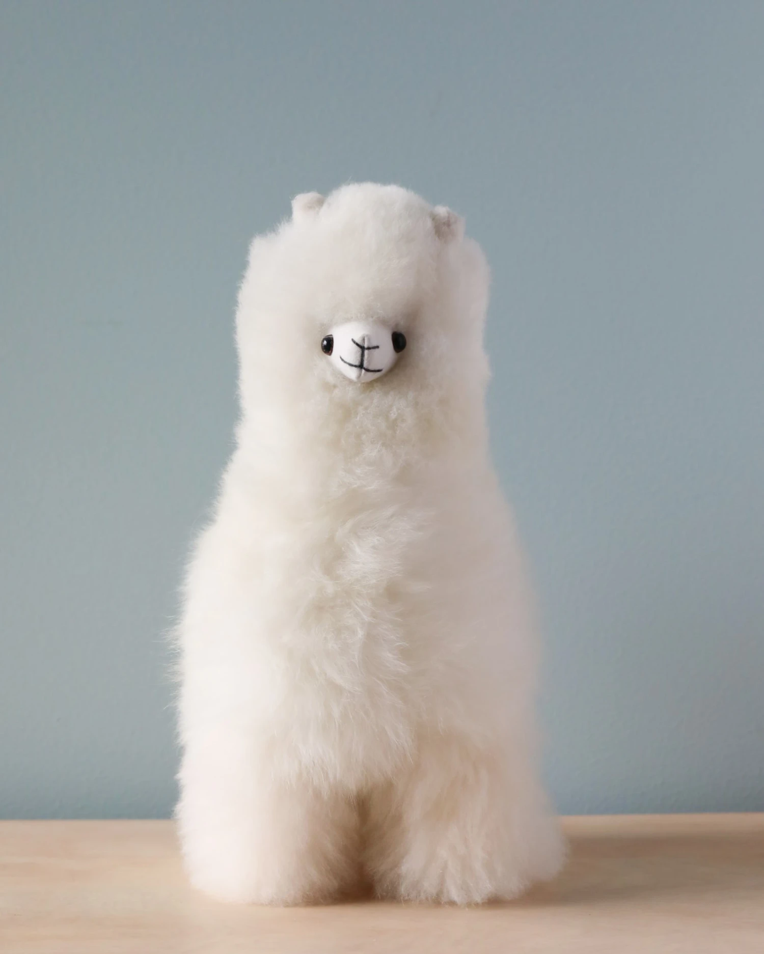 The charming and snuggle-worthy Alpaca Stuffed Animal is handmade from 100% super-soft alpaca wool from the Highlands of Peru. This is definitely the softest stuffed animal you will ever touch. That sweet face and fluffy mane sure are irresistible! This adorable furry creature makes for a unique and luxurious present for a loved one, a cute cuddly companion for the couch, or a wonderful decorative element for any cozy space.