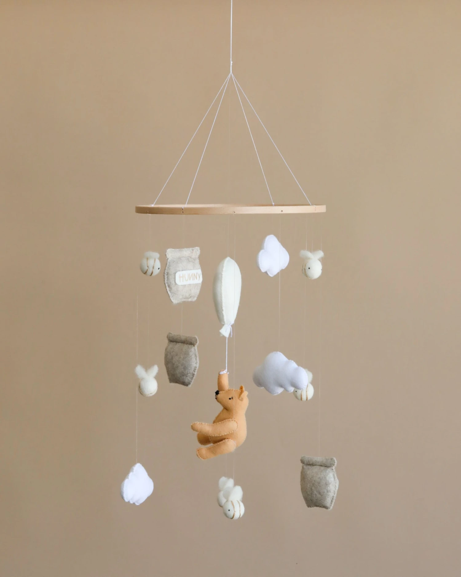 The mobiles are made to be suspended from the ceiling so you can adjust them out of reach as your little one. A hook that can be screwed directly into the ceiling is also included.