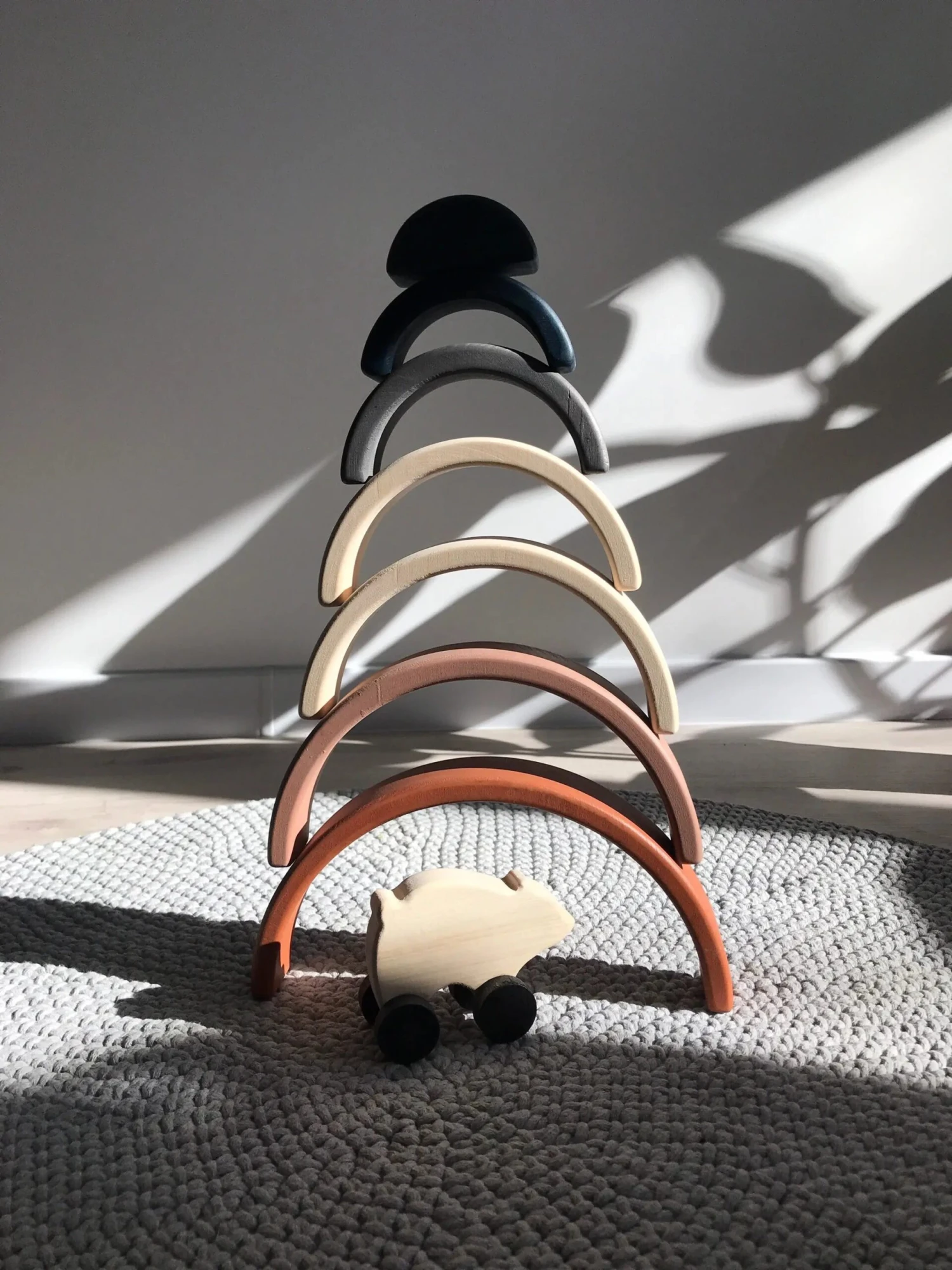 Handmade by Sabo Concept in Ukraine and painted with non-toxic, water-based paint. This stacking toy is great for open ended play.