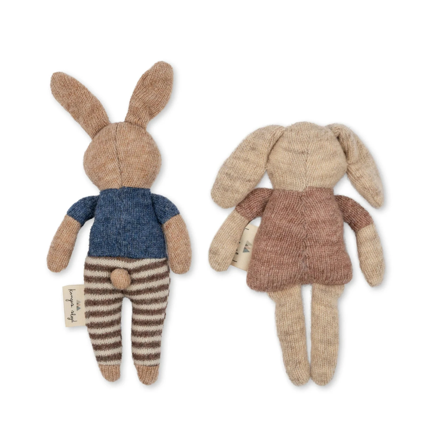 Bunny friends made with 80 percent lambswool and 20 percent nylon.
