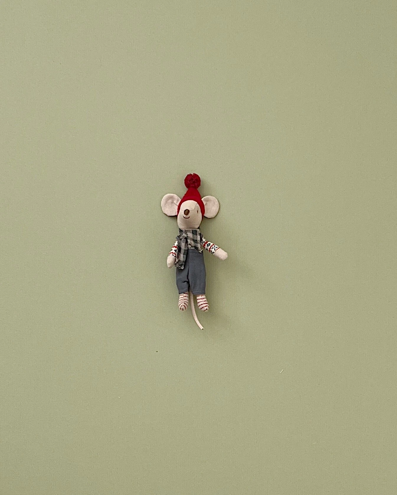 A sweet and adorable small friend, nicely dressed up for Christmas. The mouse fits perfectly into the Gingerbread house.