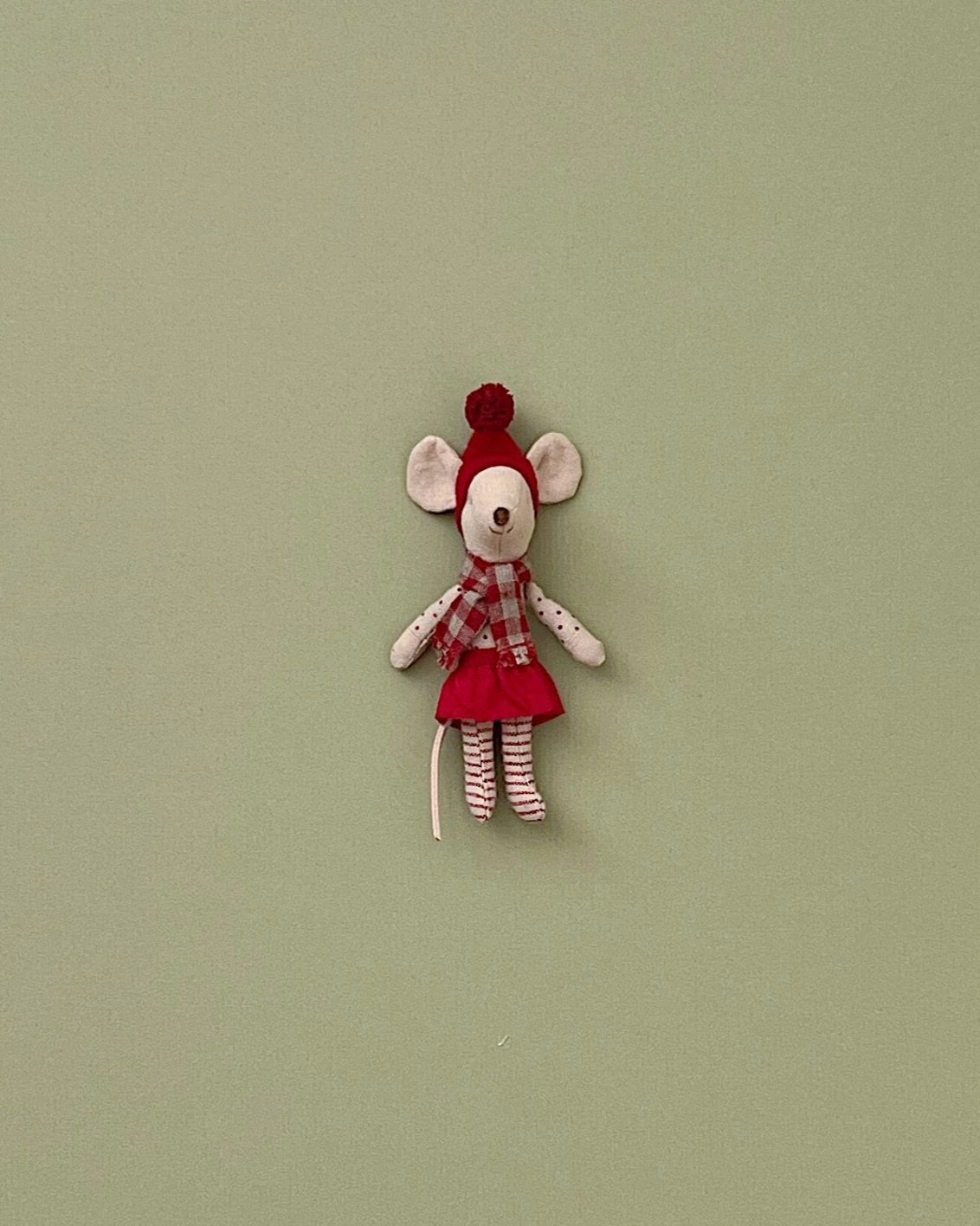 A sweet and adorable small friend, nicely dressed up for Christmas. The mouse fits perfectly into the Gingerbread house.