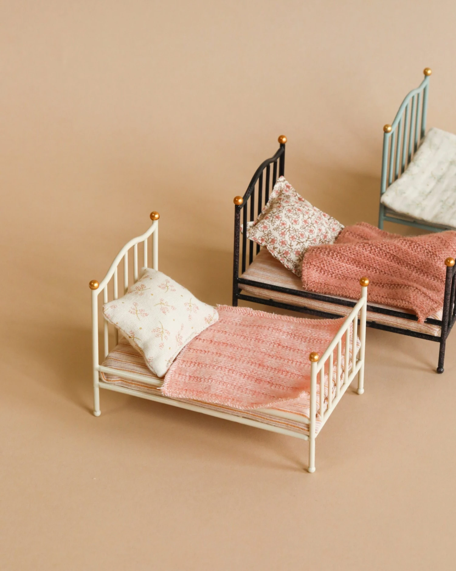 Let your Maileg friends have a sleep-over in the vintage metal bed. It comes with blanket, mattress and pillow.