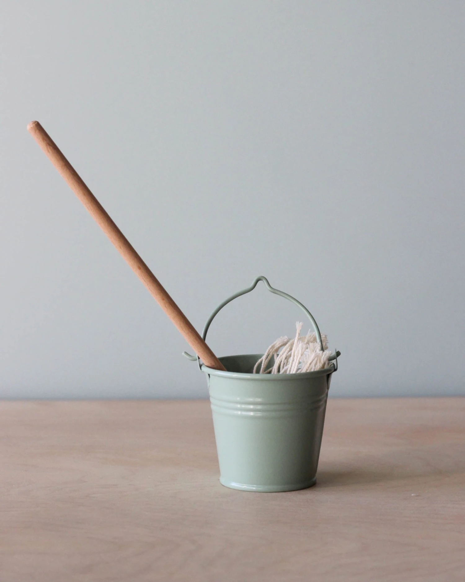 Maileg buddies need a bucket and mop to clean up those messes they make. This bucket and mop is perfect for MINI sized Maileg friends.