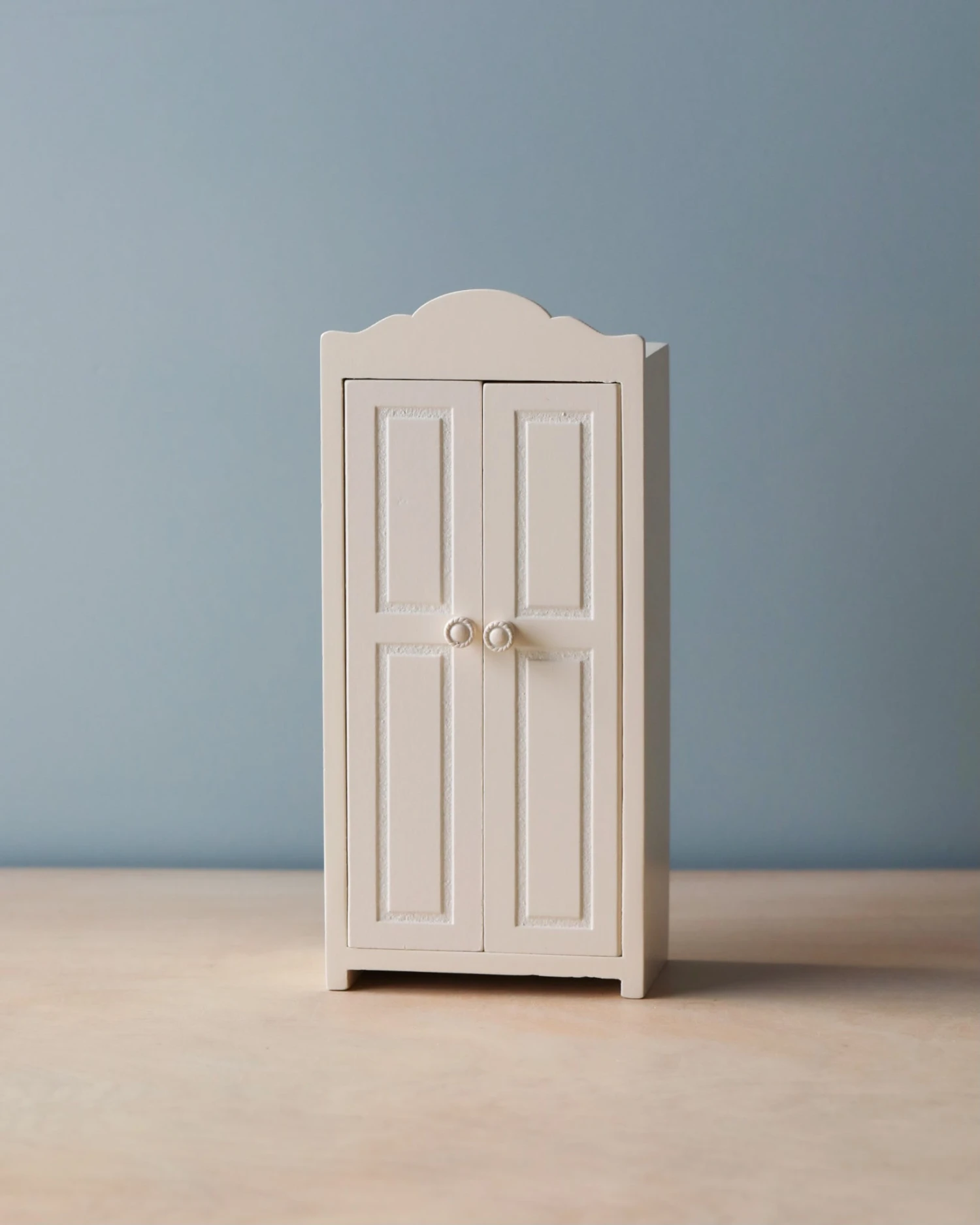 A small closet made of FSC wood. It helps the mice family organizing their wardrobe. The closet comes with 3 golden hangers.