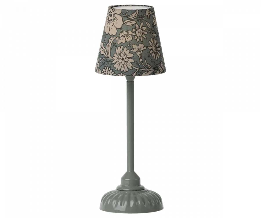 The beautiful Maileg vintage floor lamp is a must-have. The lamp will light up the room with a soft tone – remember to turn off the light when our friends go to bed. The battery can be changed by an adult. Fits the Maileg Castle perfectly.
