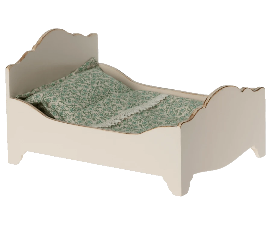 A perfect bed for a good night’s sleep. The bed linen is made in our beautiful Maileg printed fabrics – carefully chosen to make the look complete. This beautiful piece looks lovely in our mouse castles.