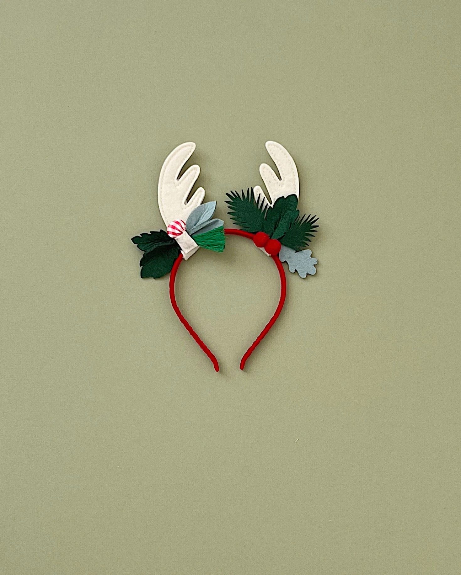 Reindeer antlers make a delightful alternative to paper Christmas party hats. These are beautifully crafted with embellishments of velvet, felt, pompoms and a tassel – perfect to look festive fantastic!