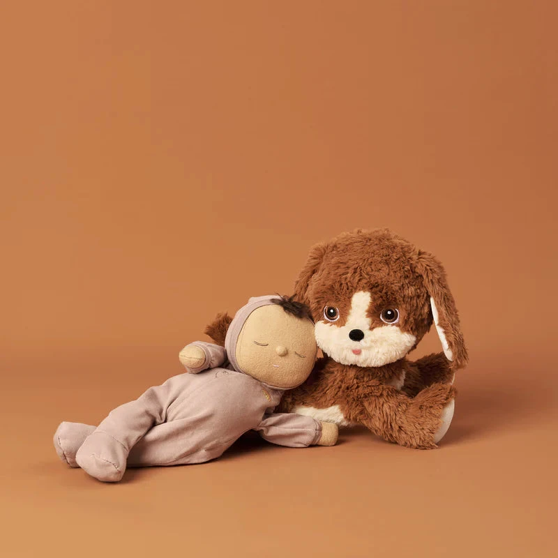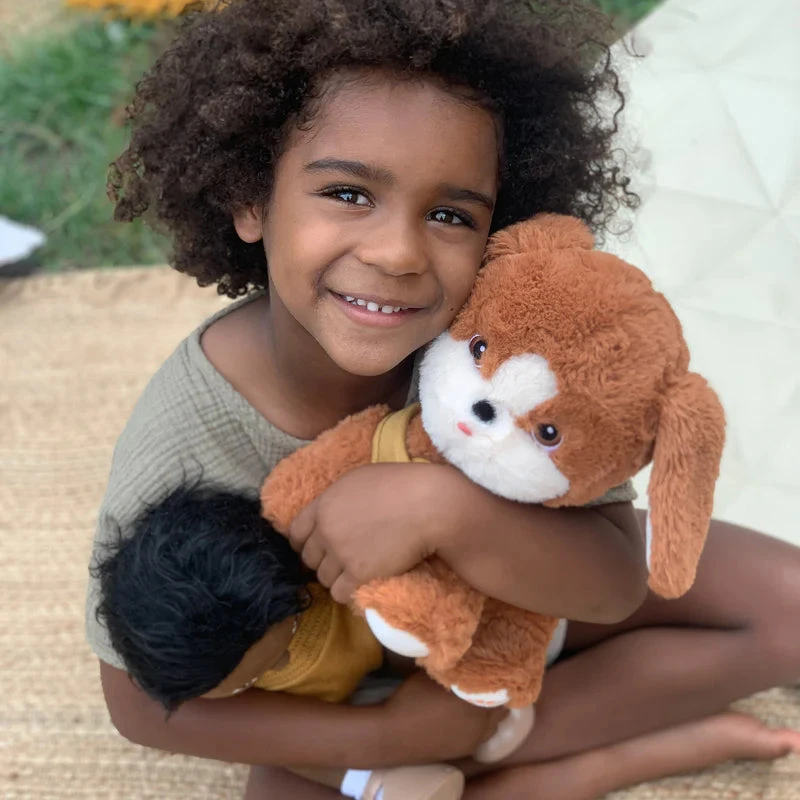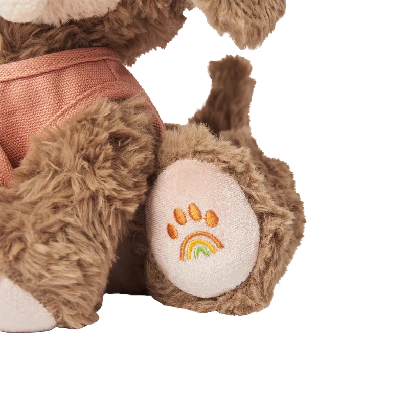 Made from soft plush fabric that is 100% recycled with velvety ears to nuzzle, Honey is fully poseable and can stand, lay down and even sit! Honey’s head moves and is embroidered with the sweetest doggy face, plus there’s a rainbow surprise on one of Honey’s little paws!