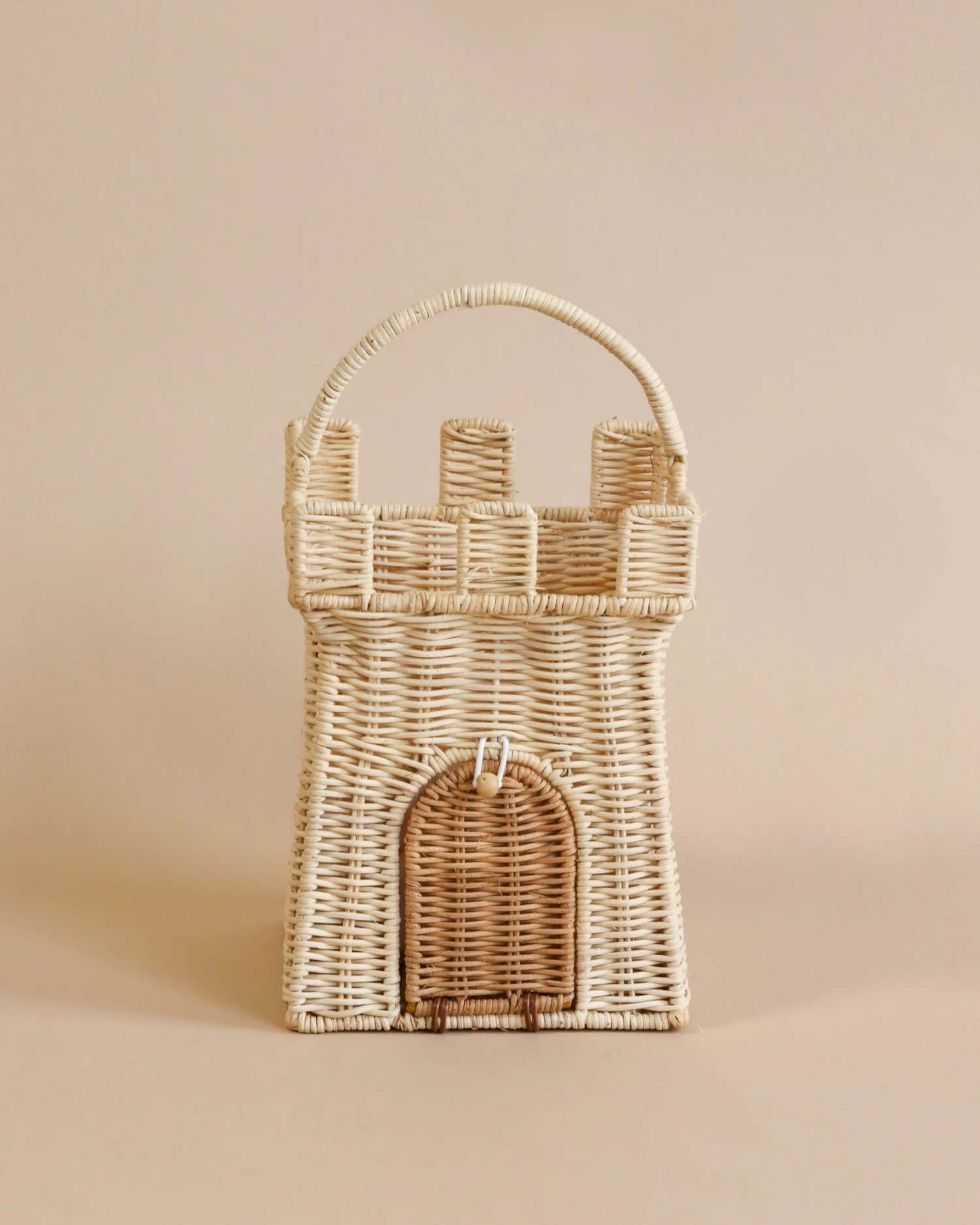 This 100% handwoven Castle is complete with turrets, a handle and a contrast rattan drawbridge that opens and closes with a little wooden button and loop for all those Prince and Princesses that might just visit!
