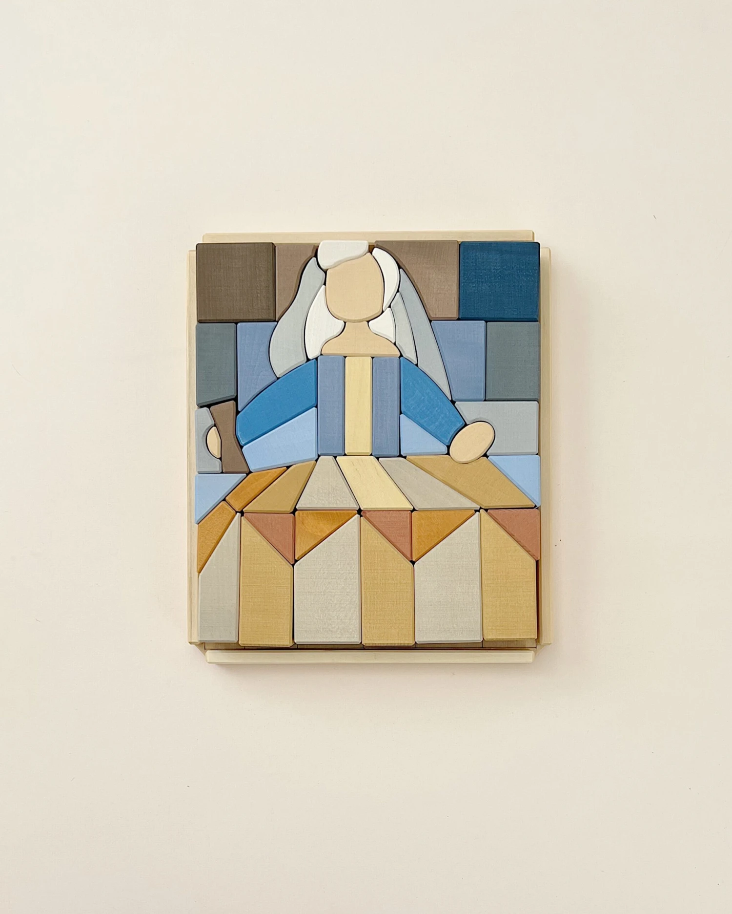 The Infante building blocks is inspired by the painting Las Meninas by Velazquez. However, without the tray, it can also be used to create houses, roads and structures. Each set consists of 49 pieces and a wooden tray.