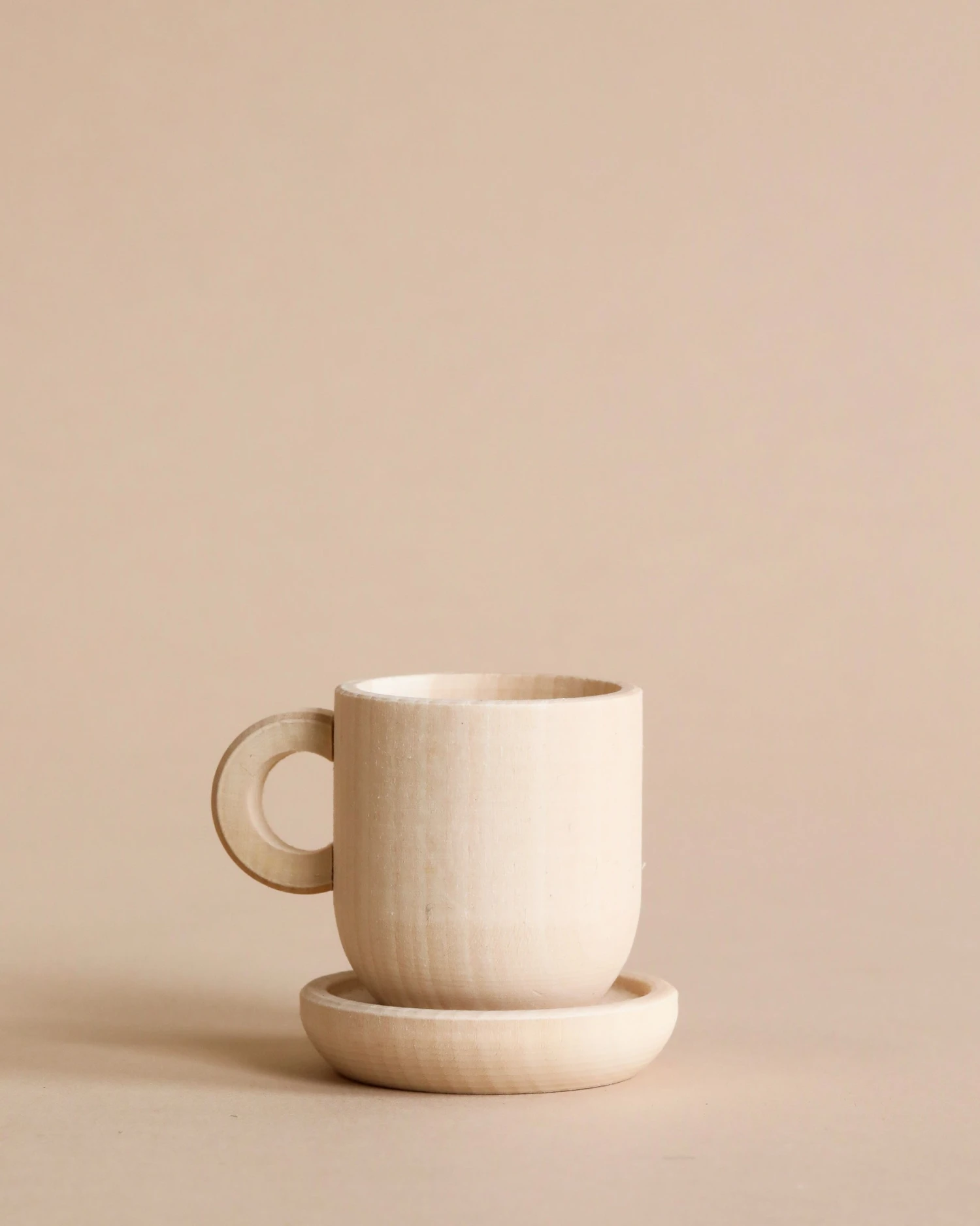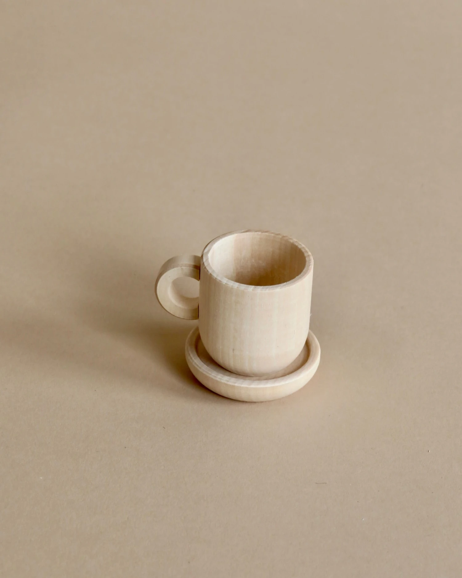 This little tea cup and saucer set is made of solid linden wood without any varnish or coating. A great addition for a doll tea party.