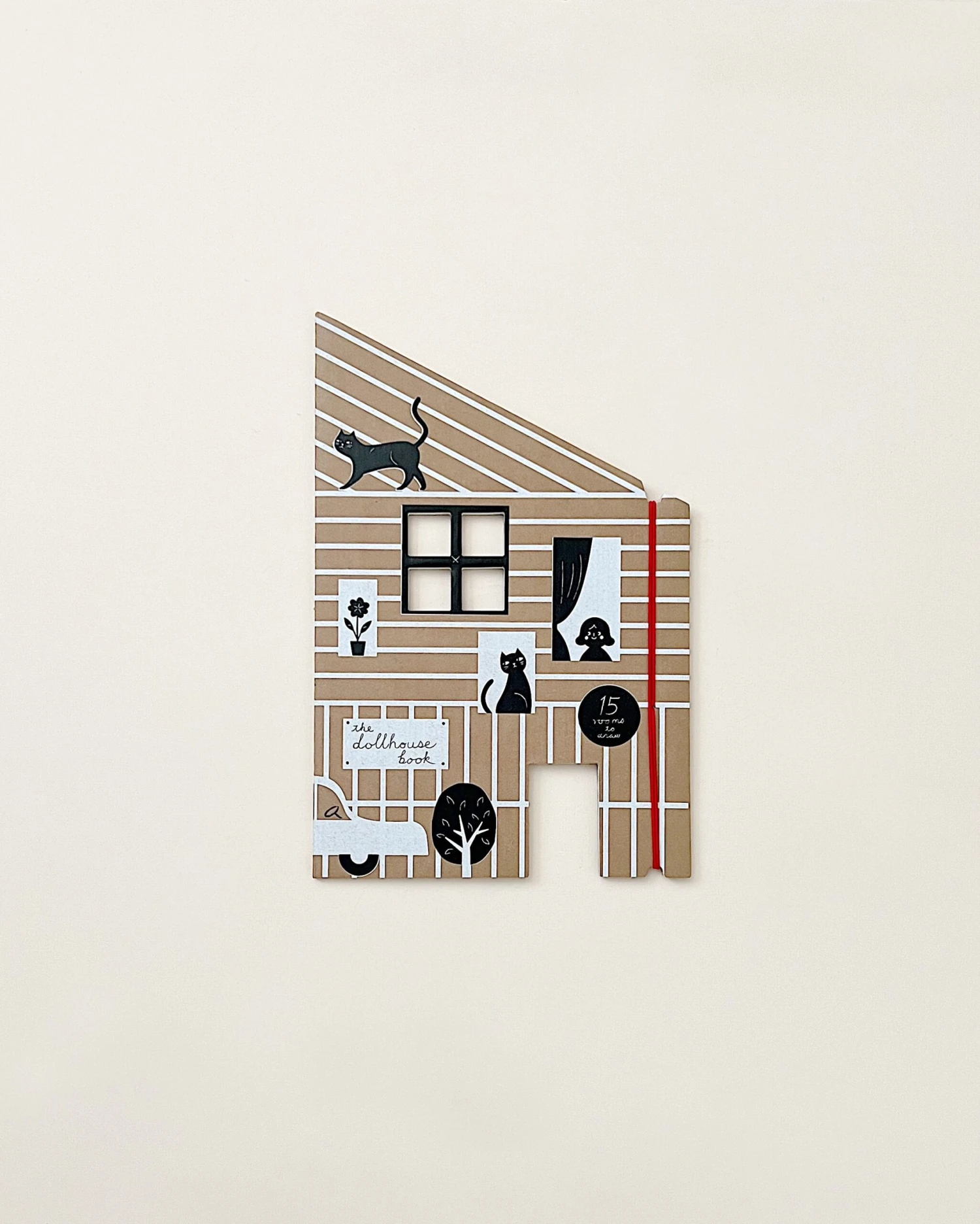 Silkscreen printed cardboard cover, hand-stitched and comes with elastic cords to hold the pages when the bear’s sitting.