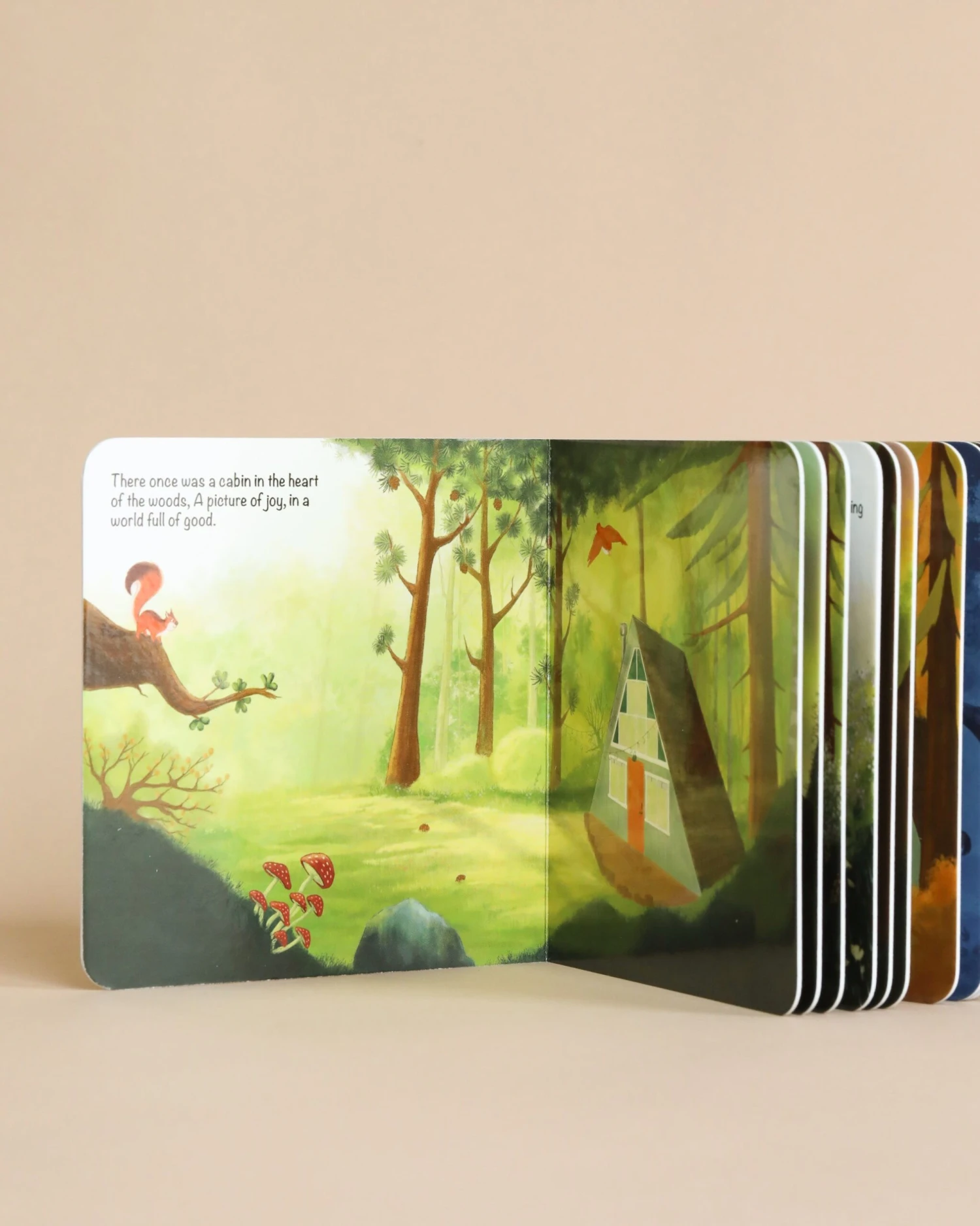 “The Happy A-Frame in the Woods” is a heartwarming and beautifully illustrated book that will take children on a journey through the seasons and encourage them to appreciate the beauty of nature. With its charming rhyming verse, this book is the perfect bedtime story for young children and families.Â